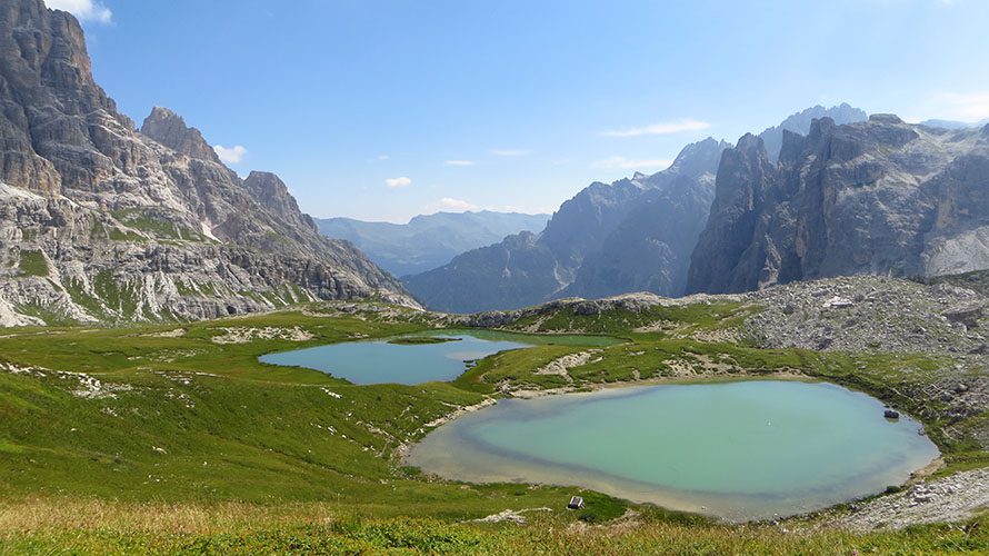After breakfast and packing our bags, we take a short bus ride to the accommodation overlooking Lake Misurina, where we will stay for the next two nights. Then, we will begin our 9.3-mile hike over the north-facing mountain pass of the towering Tre Cime. This peak is by far one of the most famous peaks in the Dolomites.