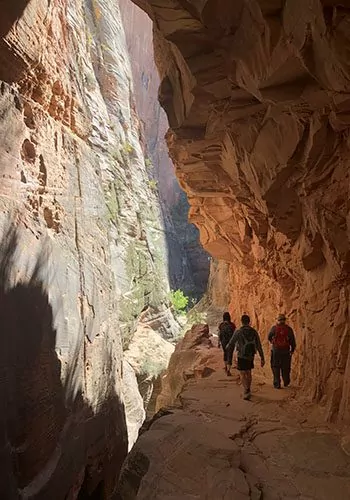 From the Narrows, we’ll venture down-canyon where we’ll traverse the inspiring Kayenta Trail, which connects Zion’s serene Emerald Pools and provides excellent opportunities to learn its lessons of geologic time and get a tactile sense for its diverse layers of rock. Cap-off our Kayenta hike with a stroll beneath the refreshing waterfalls spewing from the mouth of Behunin Canyon.