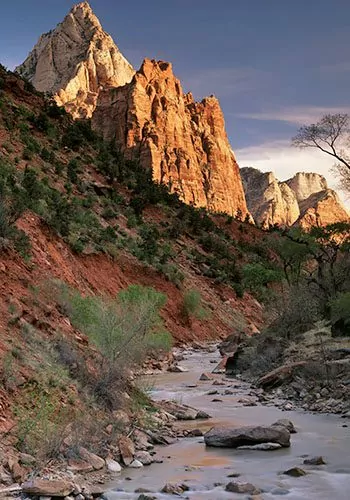 Finally, we’ll culminate our Day in Zion with an invigorating hike of the Watchman Trail, where our vantage point offers stunning views of the dramatic West Temple cliff face under the playful colors on the sinking sun. Descending the Watchman, your guide will make a few insider’s dinner recommendations so you’ll be sure to enjoy your evening-out in the canyon country town of Springdale.