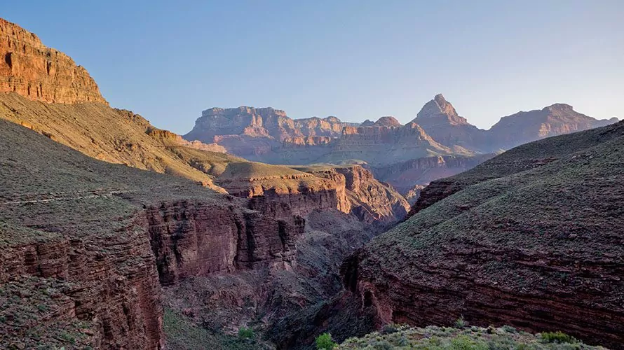 On the first day you’ll hike down the exciting Grandview Trail to Horseshoe Mesa, where you’ll have the opportunity to explore the Cave of the Domes and century-old mining ruins. We then drop off the Mesa and hike deeper into the Canyon, camping on the Tonto Plateau above the Inner Gorge. At this point we’re looking up at the towers and rims of the North Rim – a viewpoint few people experience.