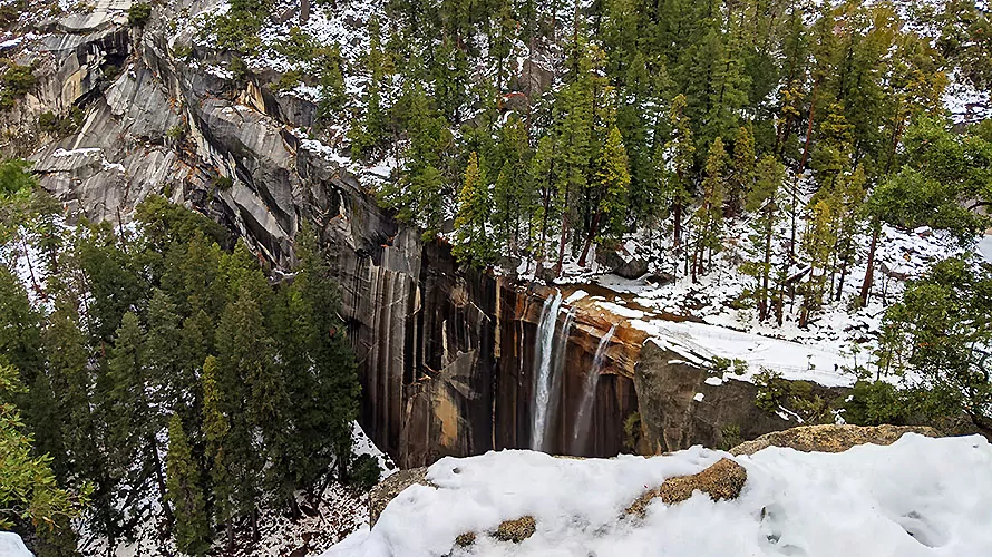 This trip follows well maintained trails. Some concerns include loose dirt, large stepping stones and tree roots. The top of Vernal/Nevada falls has exposed vertical drops with safety railings in place. Trails can be icy or snowy on this trip so be prepared to careful with your footing on variable surfaces.